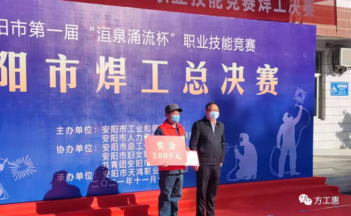 11月14日,在充滿奮斗旋律的頒獎(jiǎng)音樂中,來(lái)自方快鍋爐有限公司海河車間的張海濤,海河車間的李后龍分別獲得:安陽(yáng)市第一屆“洹泉涌流杯”職業(yè)技能競(jìng)賽焊工總決賽的第一名和第三名。