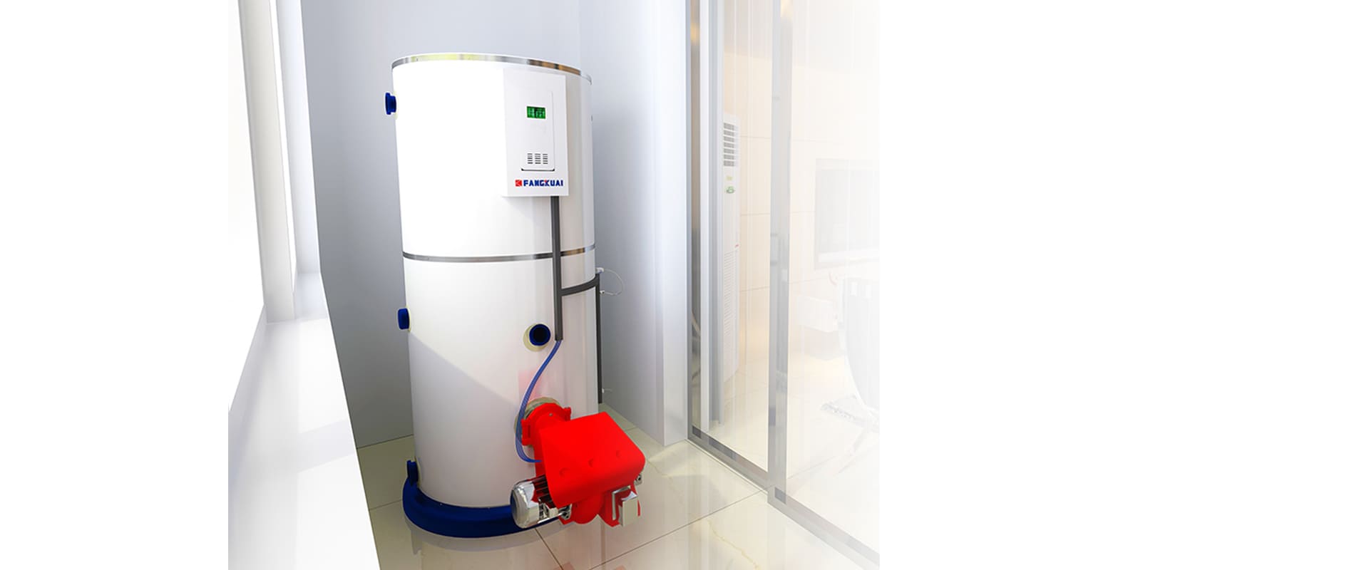 該鍋爐為立式結(jié)構(gòu),鍋爐整體體積不超2立方米,再加上水箱、輔機(jī)等設(shè)備,只需要一個(gè)25平方米的鍋爐房就夠用了,非常節(jié)省占地面積。